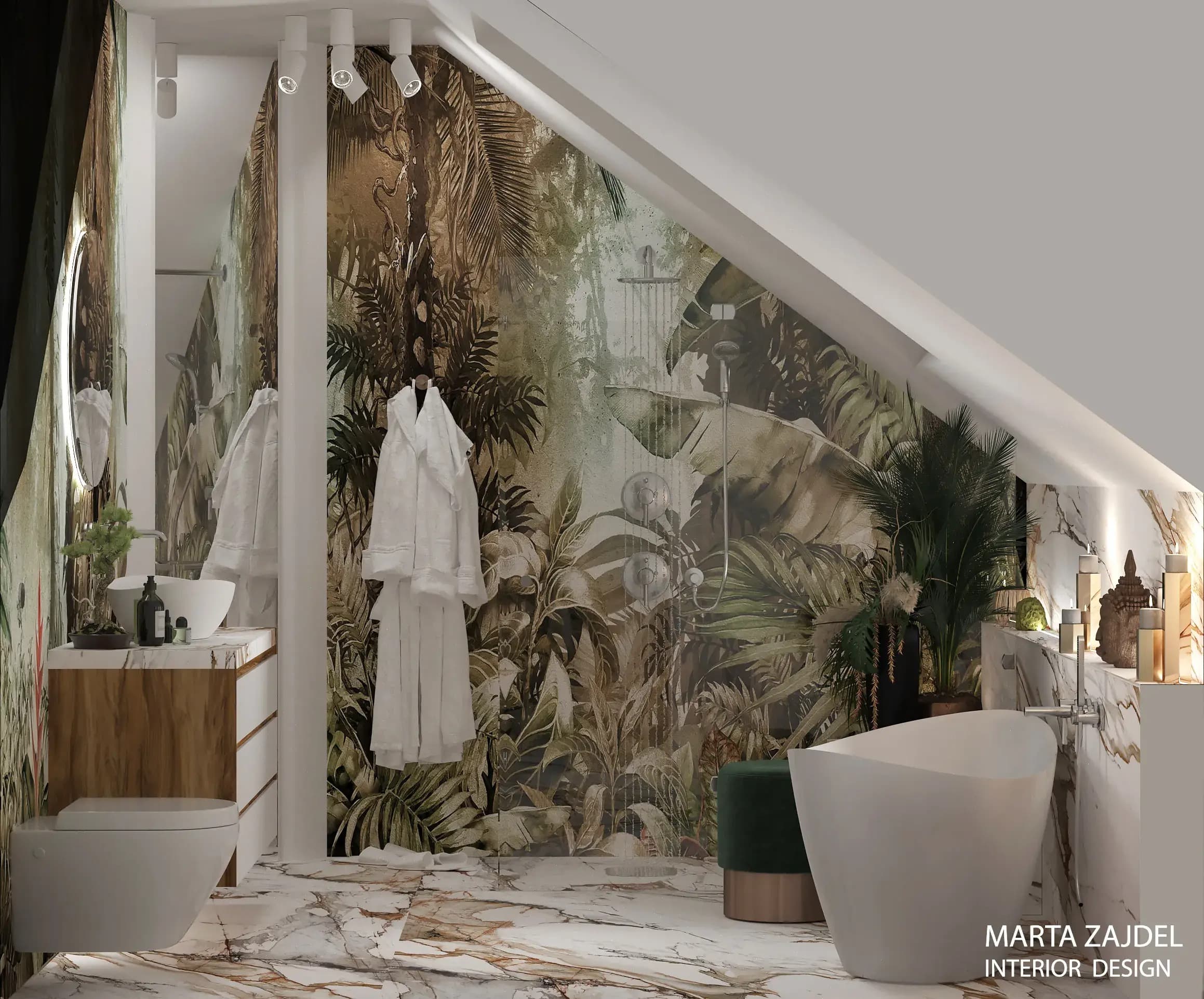 Tapety w pokojach oraz w łazienkach wprowadzają klimat relaksu i pozwalają poczuć się jak w egzotycznym SPA.